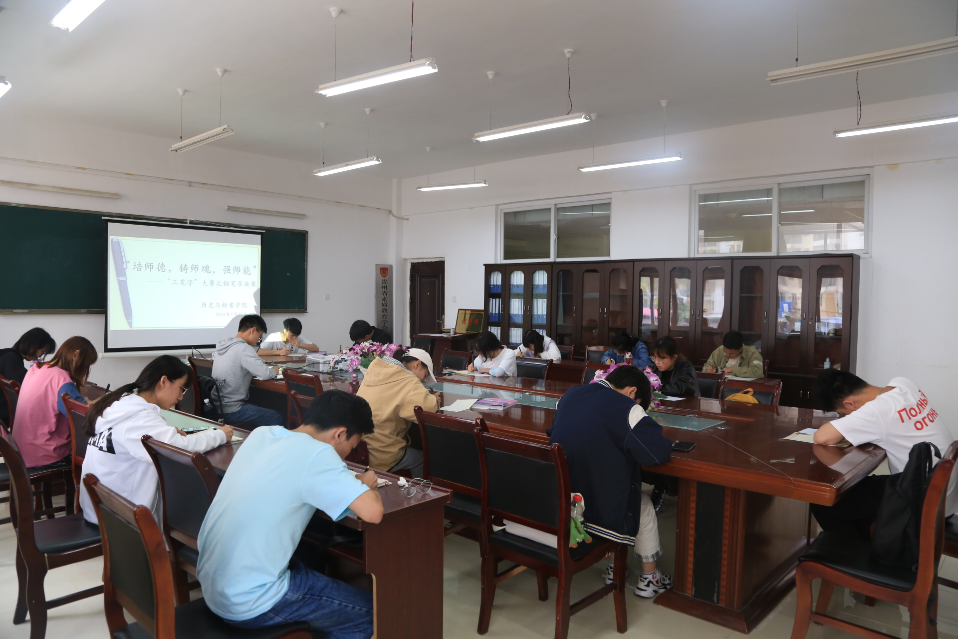 书写能力,它是师范生未来从事人民教育事业所应当具备的重要基本素质之一。如今,随着电脑的普及,“键盘侠”多了起来,传统的纸质书写方式受到一定程度上的“冷遇”。为了提高学生尤其是师范生对书写能力的重视程度,我院通过“以赛促训”的形式,在每年的春季学期,开展覆盖全院师范生的“三笔字”比赛活动。