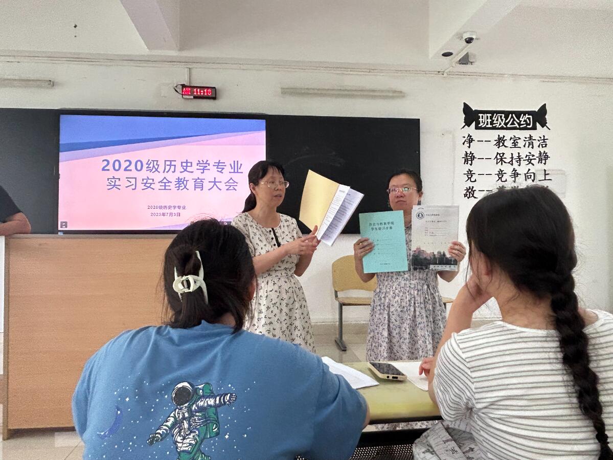 为落实学校、学院实习工作安排及要求,规范学生实习工作,强化安全意识和责任意识,切实推动2023年实习工作顺利开展。bwin必赢召开了2020级学生实习前安全教育会议,会议按专业分别在6月29日和7月3日召开。学院党委书记吴靖霞、副院长杜景、历史系主任梁中美、档案系主任刘凯出席会议。2020级历史学、档案学专业全体学生参加会议。会议由辅导员老师任宗仪主持。