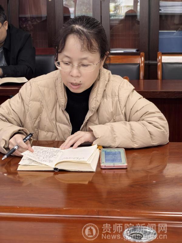 在研讨环节,全体党员聚焦 10 月 17 日学校第二次集中大课中 “2025 年深入学习贯彻习近平总书记关于教育的重要论述 以教育强国支撑引领中国式现代化”的核心内容,杜景、万国崔、游超颖、瞿智琳等同志结合全国、全省教育大会精神,围绕弘扬教育家精神、推进教育发展与科技创新和人才培养一体化、强化教育支撑力等议题展开交流,深入探讨如何以高质量教育与高素质专业化教师队伍,服务中国式现代化贵州实践,大家普遍认为教师要认真落实立德树人根本任务,要立足国家与地方的需要,要勇于融入教育强国强省的事业当中。