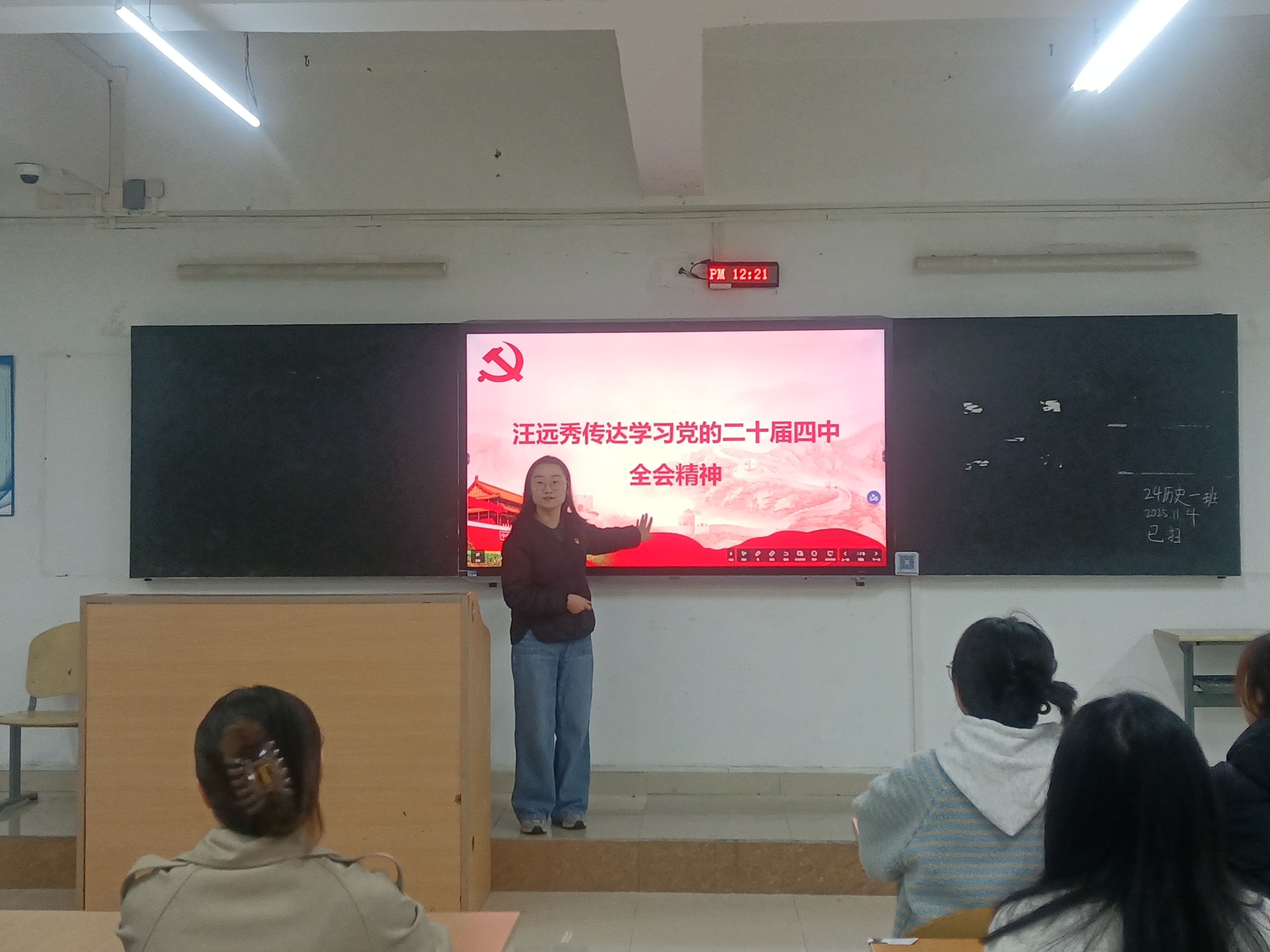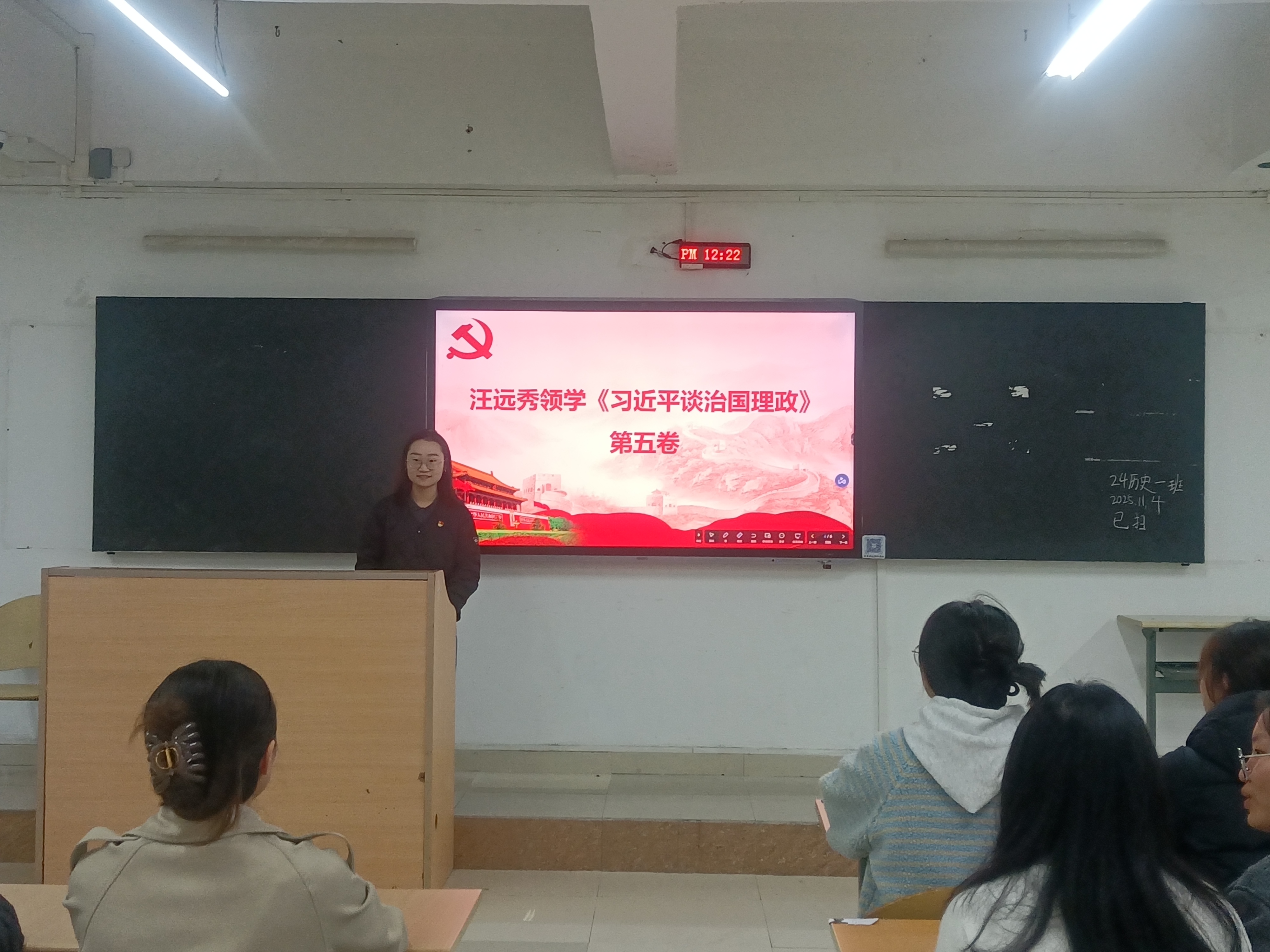 为深入学习贯彻党的二十届四中全会精神,深刻领会《中国共产党章程》和《习近平谈治国理政》第五卷的核心要义,11月5日,bwin必赢学生第二党支部在明德楼425组织开展“学精神谋发展谱新篇”主题党日活动。本次主题党日活动采取“线上+线下”相结合的形式,由支部书记汪远秀主持,全体党员参加。
