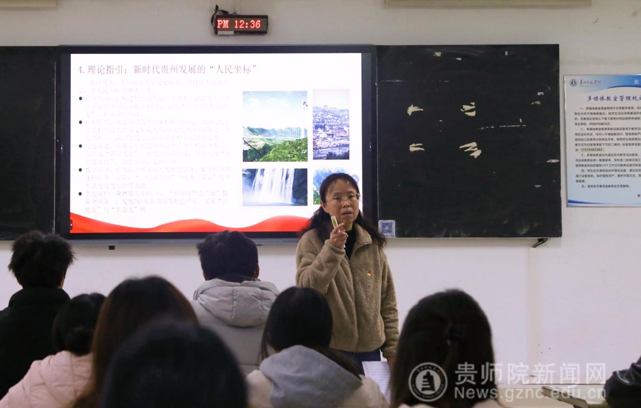 在“实际拓展”环节,杜景带领同学重点剖析“桥梁经济”“数字乡村”等创新实践如何激活山区动能,铺就乡村振兴幸福之路的生动实践,都印证着‘发展为了人民、发展依靠人民’的深刻内涵。最后,立足新时代坐标,强调以“人民需求”为导向的发展规划,是贵州从“后发赶超”迈向“高质量发展”的核心指引。