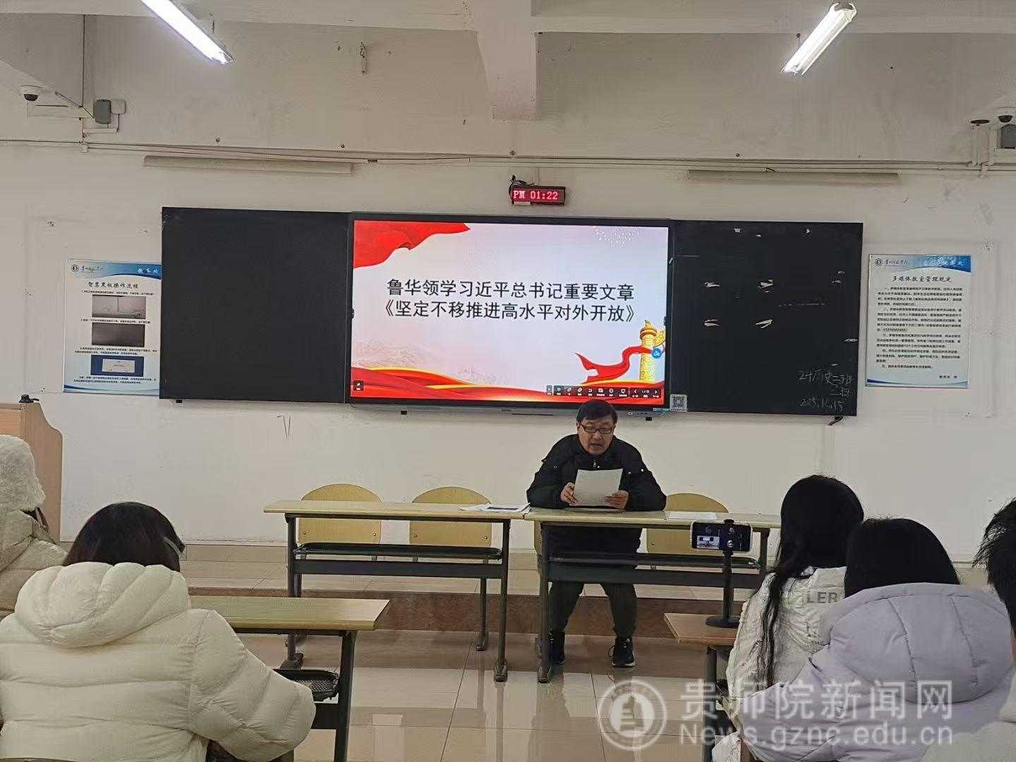 随后,鲁华领学习近平总书记重要文章《坚定不移推进高水平对外开放》:文章强调顺应全球化潮流,以双循环为路径,完善开放体制机制,统筹开放与安全,推动高水平对外开放。《中国共产党思想政治工作条例》:《条例》作为思政工作主干法规,明确党全面领导,完善体系,为强国建设提供思想保证。宣讲深入贯彻中央八项规定精神学习教育中央、指导组暨中央层面工作专班、总结会议精神、深入贯彻中央八项规定精神学习教育省委督导组暨省级层面工作专班总结会精神、省委召开引导干部树立和践行正确政绩观:宣讲相关总结会精神,旨在巩固深入贯彻中央八项规定精神学习教育成效,推进作风建设常态化;省委引导干部树立践行正确政绩观,以优良作风促发展惠民生。