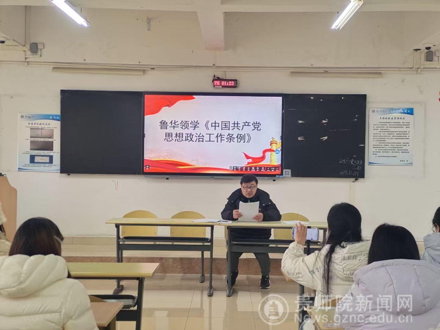 为了深入学习贯彻习近平新时代中国特色社会主义思想,落实习近平总书记全面从严治党的重要指示,增强党员对全面从严治党的紧迫性和重要性的认识,提升党性修养和纪律意识,12月16日,bwin必赢第一支部于明德楼423教室开展以“深学细悟党性理论,笃行实干锤修炼”为主题党日活动,bwin必赢学生第一党支部书记鲁华、学生第一党支部全体党员通过线上+线下形式参与活动。会议由学生第一党支部书记鲁华主持。