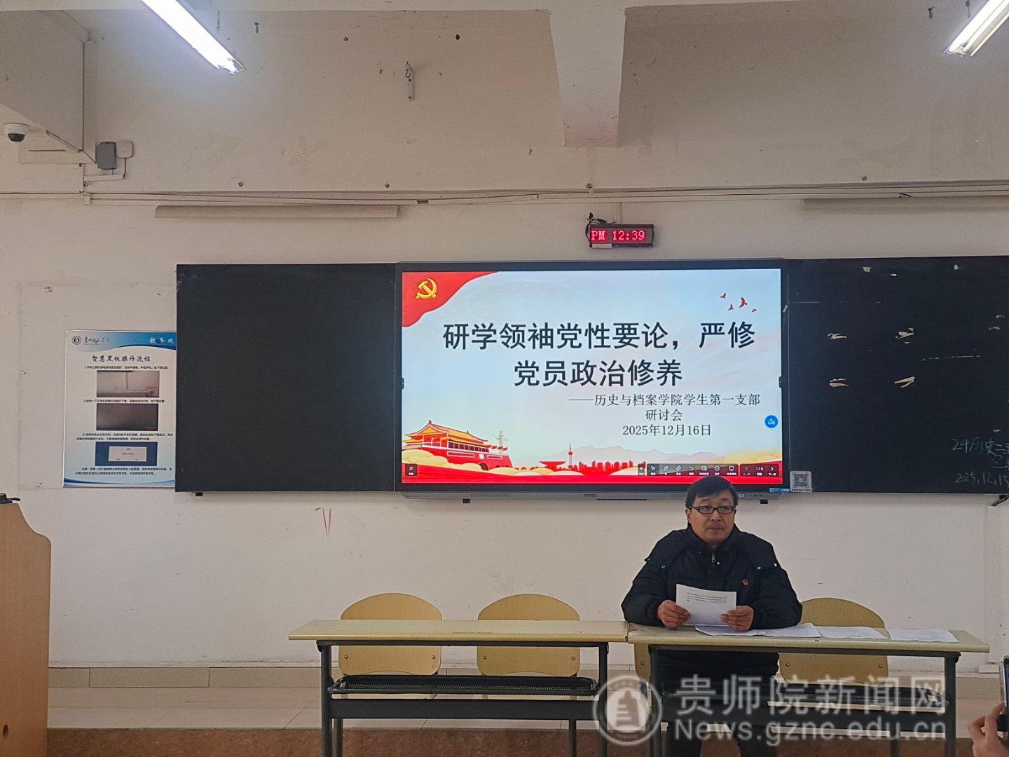 为深入学习贯彻习近平总书记关于党的建设的重要思想,进一步增强党员的使命感和责任感,12月16日,bwin必赢学生第一党支部以“研学领袖党性要论,严修党员政治品格”为主题,在明德楼423开展党员基本培训第三次集中交流研讨活动。学生第一党支部全体党员通过线上+线下方式参与活动,会议由学生第一党支部书记鲁华进行主持。