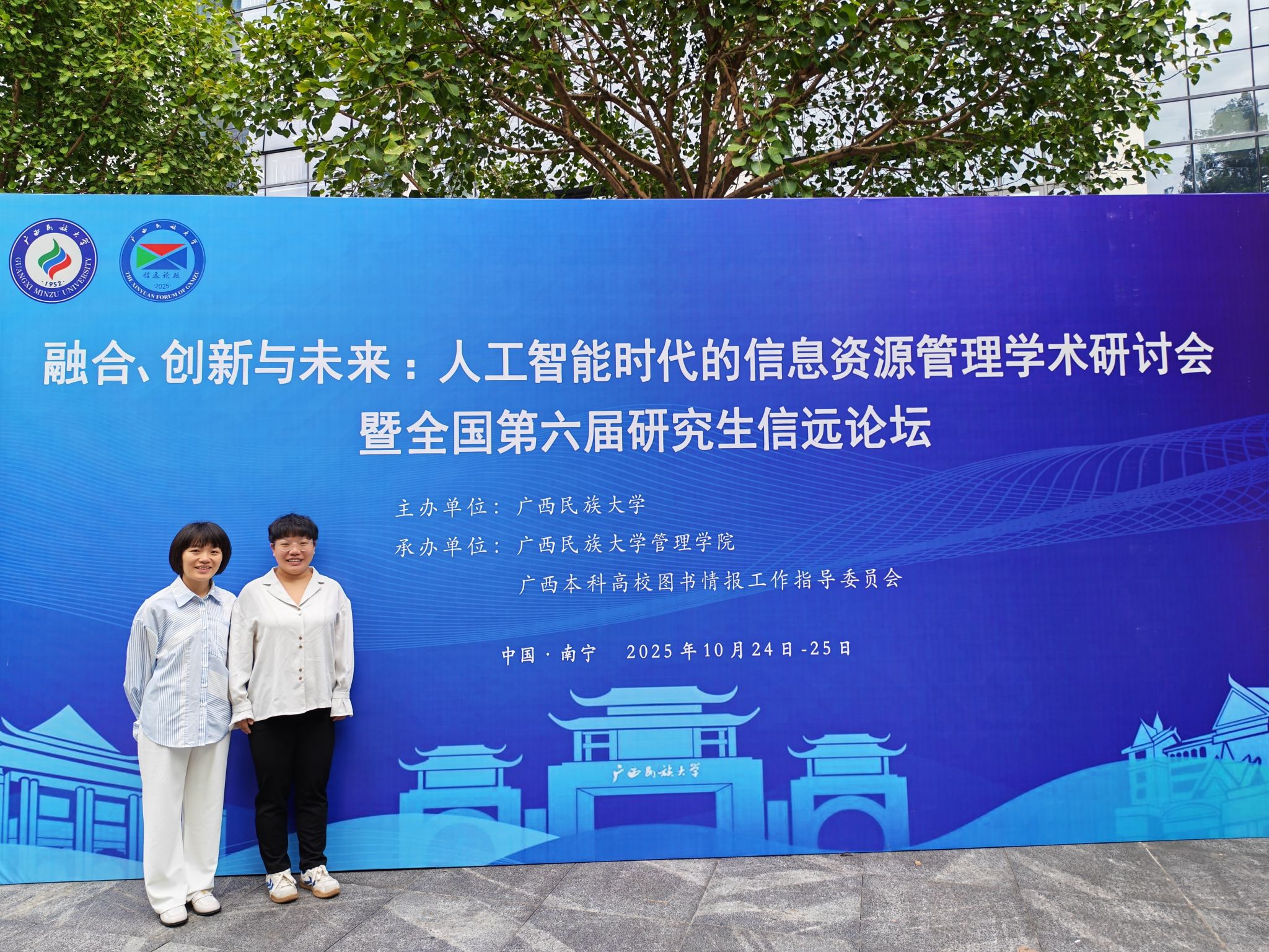 10月25日,由广西民族大学主办,广西民族大学管理学院和广西本科高校图书情报工作指导委员会承办,以及《图书情报工作》《档案管理》《档案与建设》《档案学刊》等期刊支持的、“融合、创新与未来:人工智能时代的信息资源管理学术研讨会暨全国第六届研究生信远论坛”,于南宁召开。我校我院教师瞿智琳、向礼花受邀,参加此次学术盛会。
