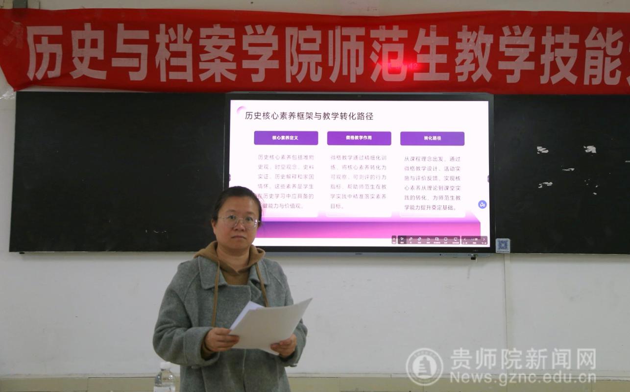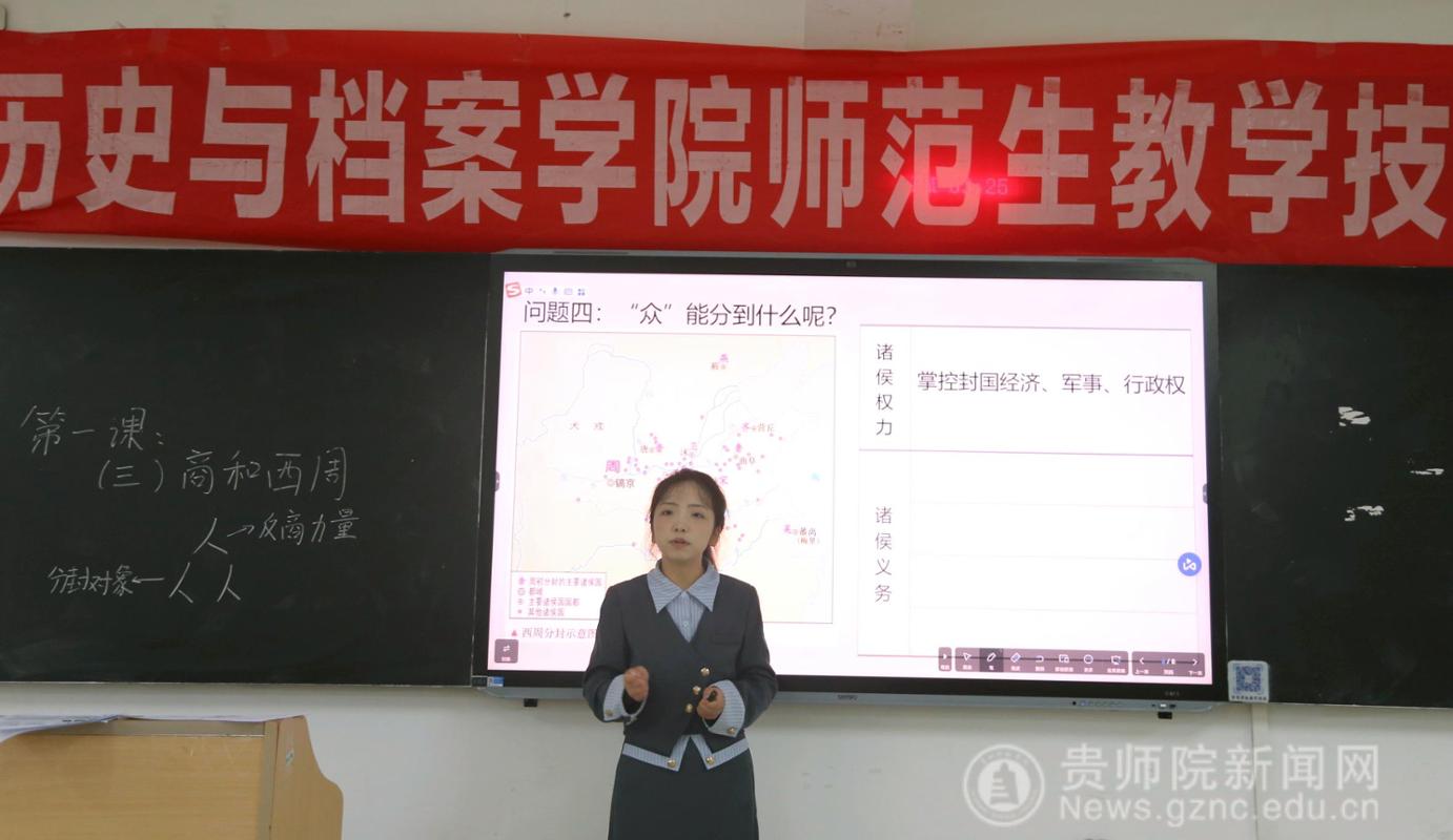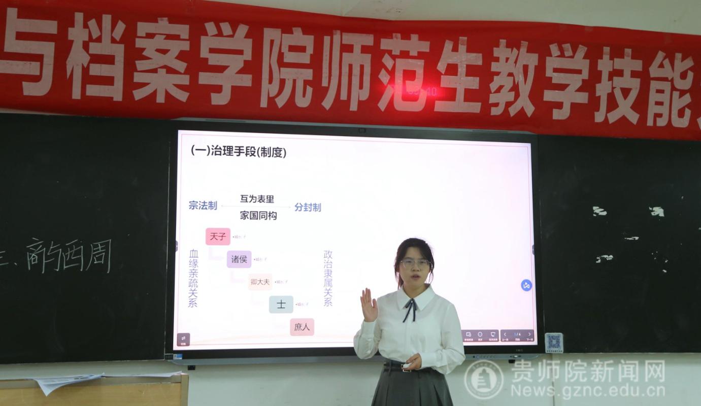 教学技能是历史专业学子未来走上讲台,传承历史文脉的核心能力。比赛开始前,张丽琴首先介绍了本次比赛的流程与规则。随后,十八位优秀的参赛选手带着从容不迫的微笑,逐一出场,以精湛的教学技艺与饱满的育人热情,上演了一场精彩的教学盛宴。比赛中,部分选手,通过展示商周时期的朝代文物图片,直观增添历史教学的趣味性;另有选手以国家历史脉络为切入点,引导听众逐步深入了解遥远的历史朝代。参赛选手们在三尺讲台上大显神通,展示鉴古知今,源远流长的历史学魅力,展现出历档学子驰而不息,久久为功的精神风貌。