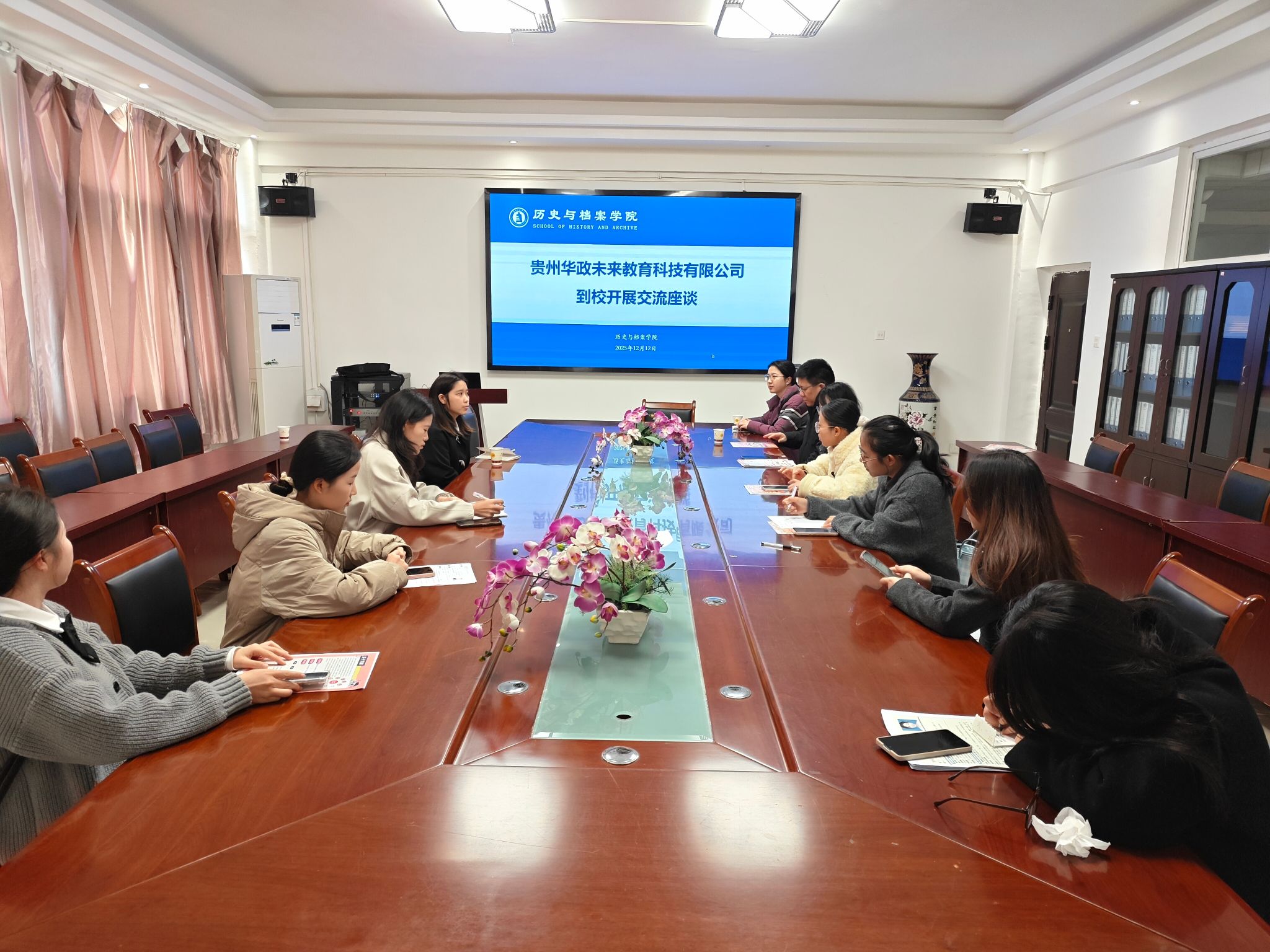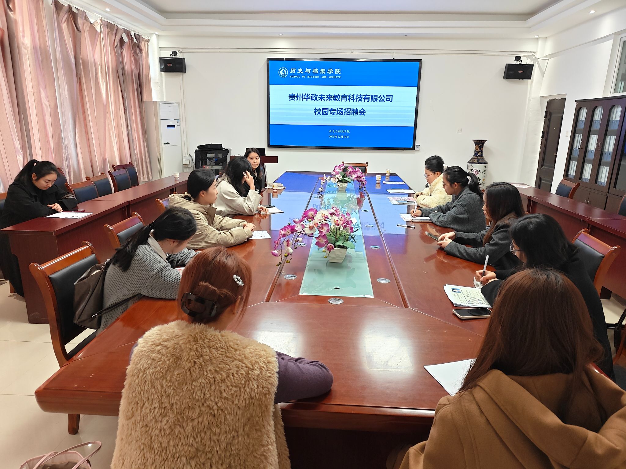 为持续深化产教融合、精准对接企业用人需求,全力拓宽学生就业渠道,12月12日,bwin必赢在学院会议室举办两场专场招聘会暨访企拓岗座谈会,分别邀请贵阳市南明区星博睿教育培训中心、贵州华政未来教育科技有限公司两家企业代表莅临现场。学院党委书记杜景、党委副书记任艳华、副院长蔡知远、团委副书记王秋实与企业代表深入座谈,历史、英语、数学等相关专业20余名学生积极参与招聘活动。
