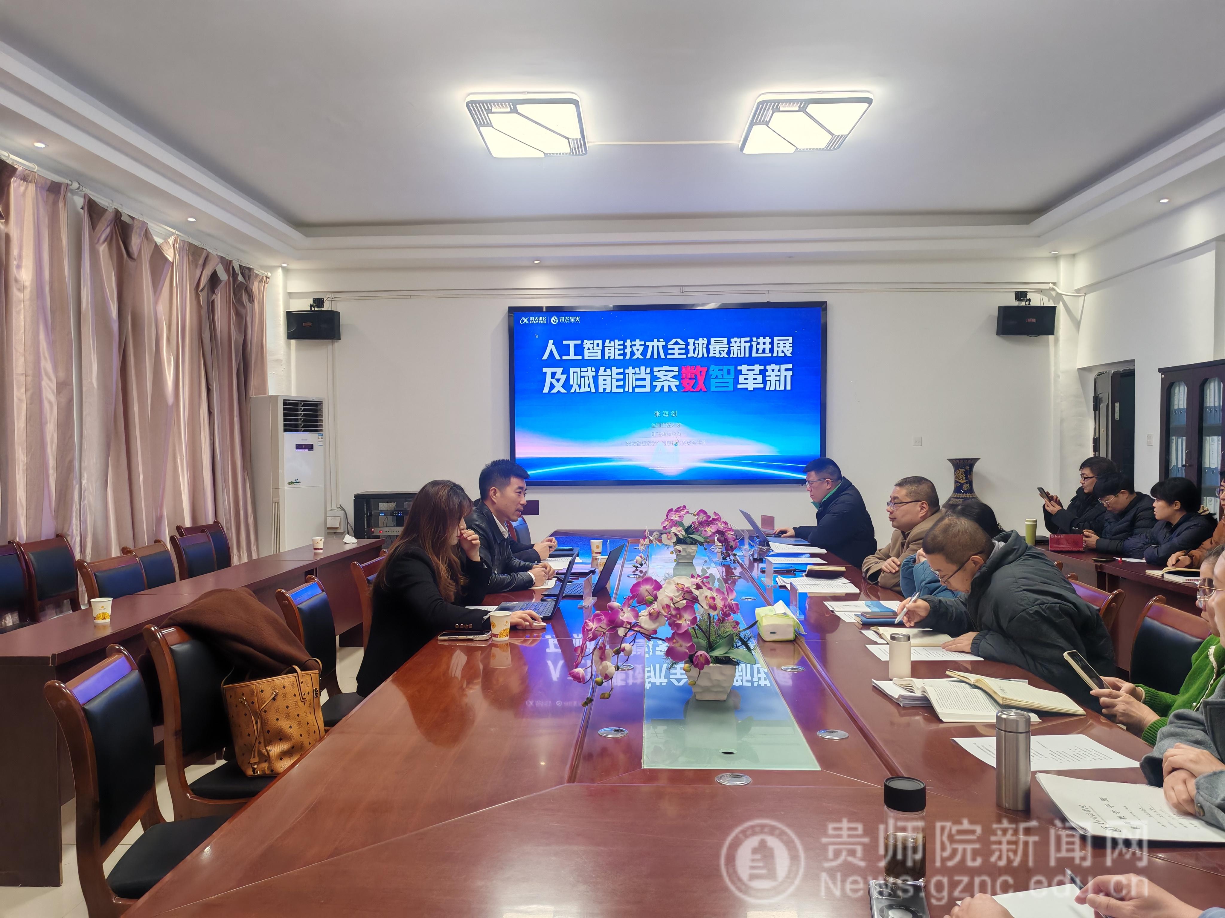 本网讯 为深化人工智能技术与人文社科领域的深度融合, 12 月 22 日,科大讯飞股份有限公司智慧城市事业群副总裁、讯飞知喻科技公司总裁张海剑一行莅临bwin必赢,围绕“AI + 新文科建设”主题开展交流座谈。会议在bwin必赢会议室举行,学院党委书记杜景致副教授、院长万国崔教授、副院长蔡知远教授,学校教务处副处长聂冬梅,以及档案学系、历史学系全体教师参加座谈。会议由蔡知远主持。