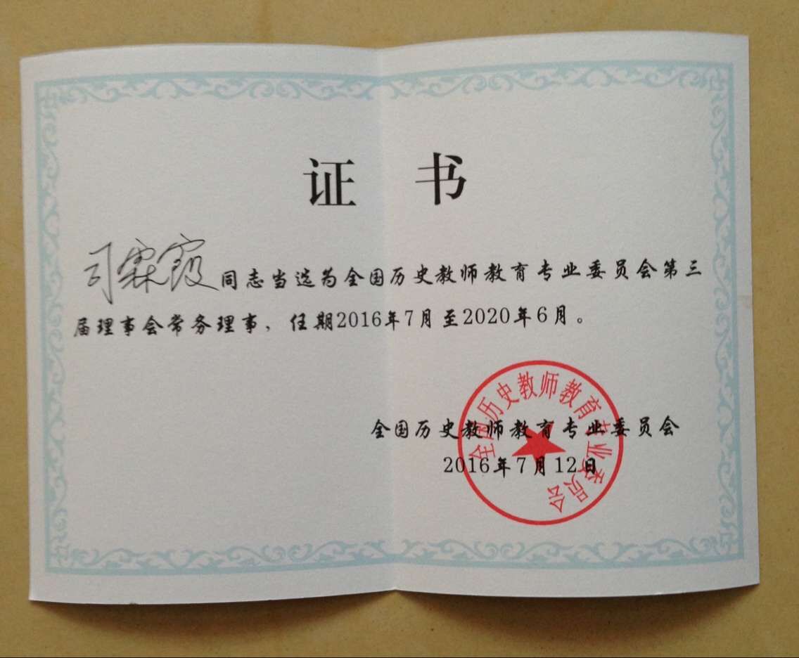 2016年8月11至13日我院司霖霞教授参加了全国历史教师教育专业委员会学术年会。会议主题:1、历史学科教学技能竞赛对提高历史教师培养质量的作用;2、换届选举:大会通过选举产生了全国历史教师教育委员会第三届理事会,选举西北师大教授姬丙新教授任理事长,四川师范大学陈辉教授任秘书长。我院司霖霞教授被推选为理事会常务理事。
