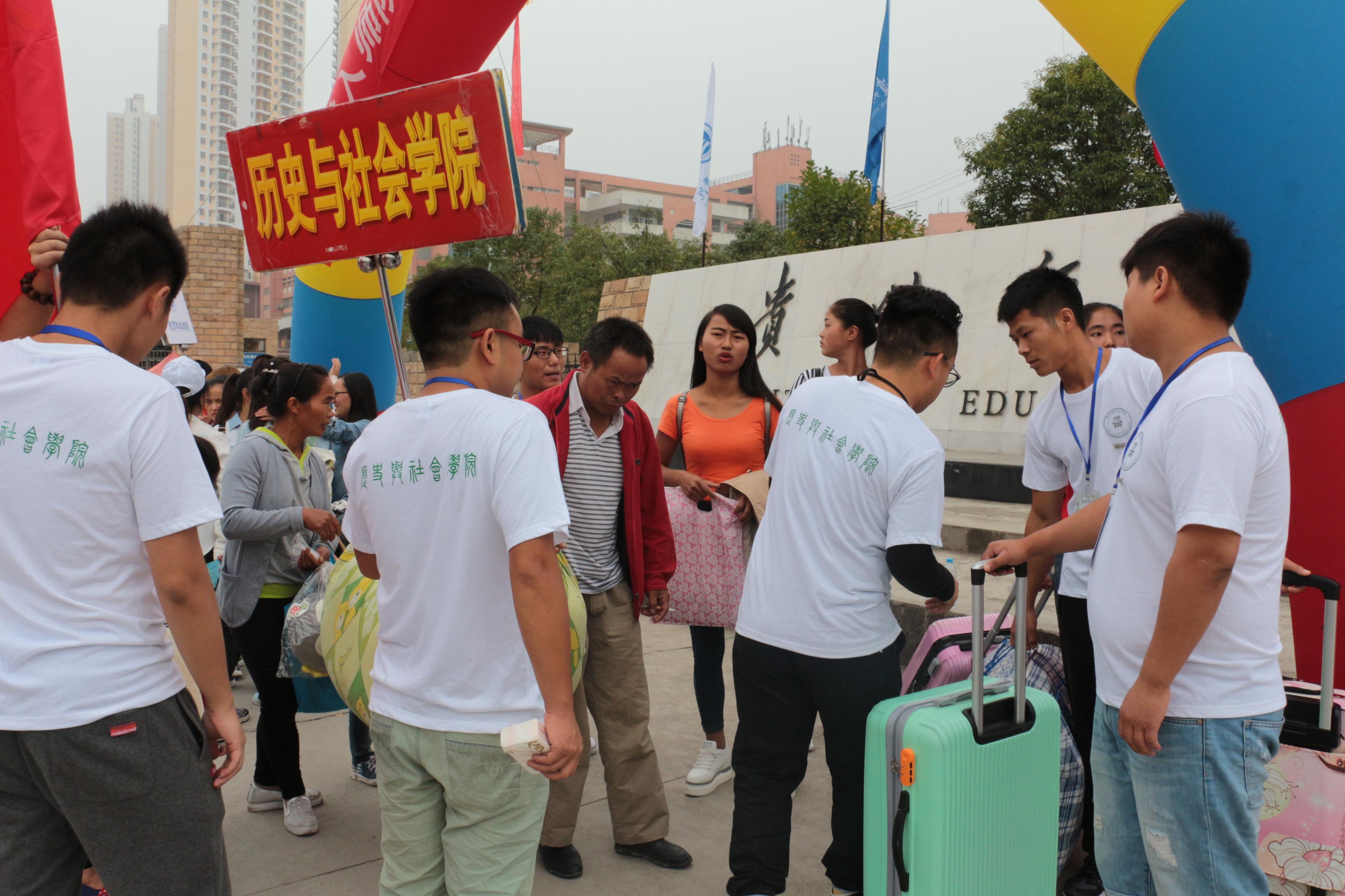 天朗气清,秋风习习,伴随着金桂飘香, 9月7日,历史与社会学院迎来了2016级新同学。经过充分的准备,学院迎新工作有条不紊地进行。在老师的带领下,志愿者们热情洋溢、激情澎湃,接待着学弟学妹们的到来。校门口,有不辞辛苦举着“历史与社会学院”院牌的志愿者;行路上,有忙碌为新生提供引导和帮忙的学长;迎新工作台旁,有不厌其烦给新生、家长答疑的学长学姐;接待区有忙着在前台为新生办理报名注册程序的老师们;休息区有为家长提供服务的学生会同学,解答疑问的学院领导和老师……迎新工作紧张有序地进行,学院老师和同学的热情使新生及家长们对学校的陌生感渐渐消散,融入到了师院这个大家庭中。