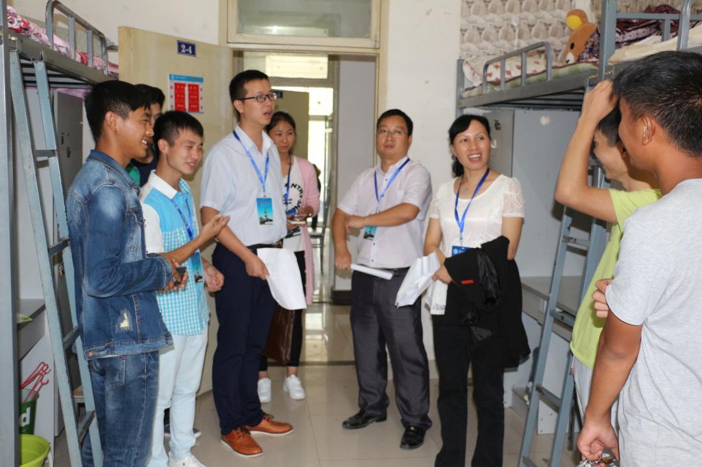 在宿舍里,吴靖霞、魏郭辉就新生住宿安排、是否能适应和家庭情况等问题进行了详细询问。鼓励新生积极适应新环境,正确处理好同学之间的关系,强调来大学不仅要学习知识,还要提高自己的综合素质与能力;针对现今五花八门的诈骗手段,提醒学生提高安全意识。另外,新生辅导员老师任宗仪和学工助理、学院学生会成员也对学院相关情况做了具体介绍,留下了联系方式。在宿舍中,新同学们从一开始与老师们交流的紧张到后来的放松,每一间宿舍里都充满了欢声笑语。