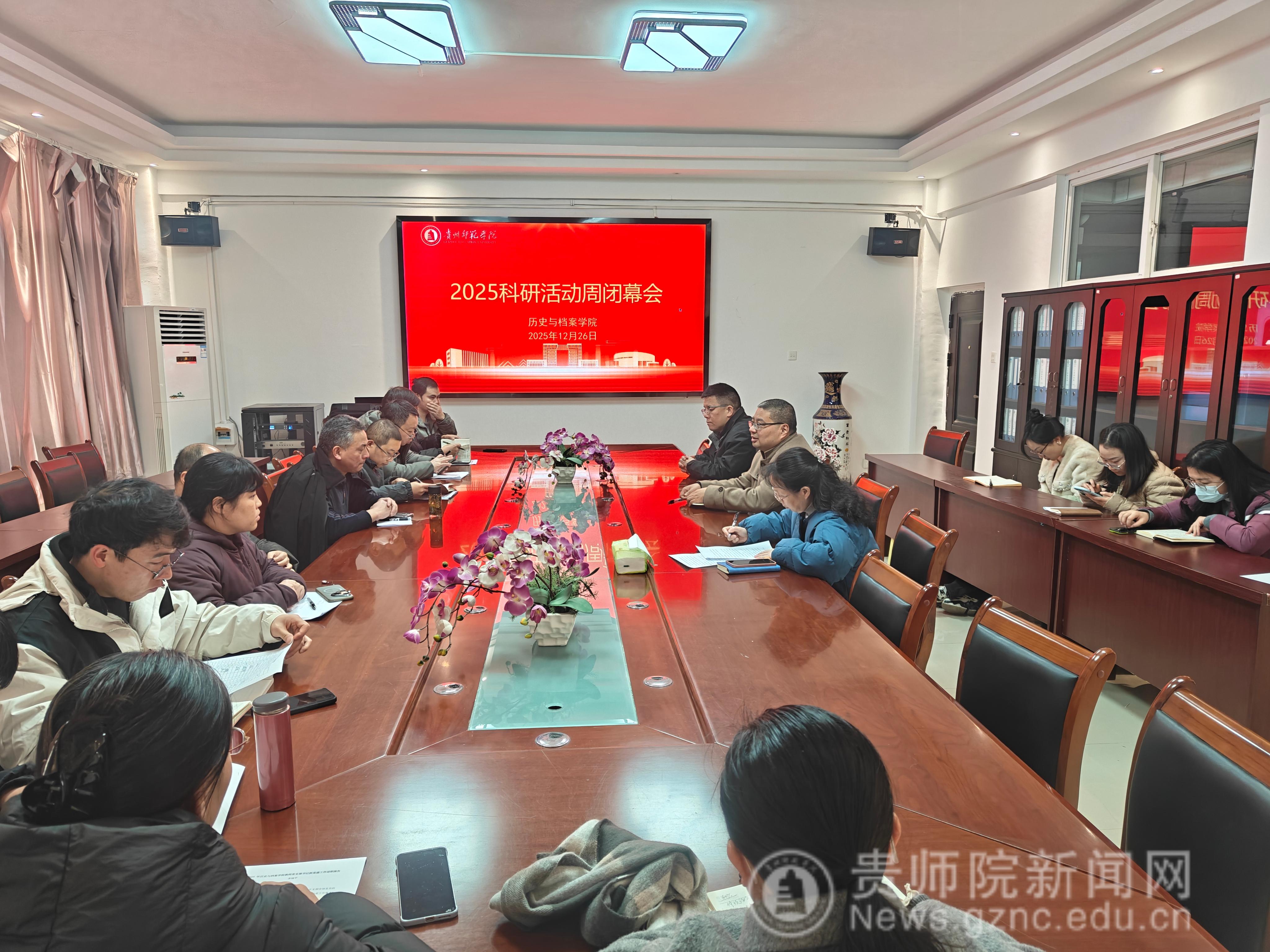 杜景在闭幕致词中,对本次科研活动周取得的成果给予充分肯定。她向为活动顺利开展辛勤付出的教职工致以诚挚感谢,并对学院科研工作与教师科研发展提出三点殷切希望。第一,坚持科研兴院,立足学科特色与优势,推动产学研用深度融合,让学术研究精准对接社会需求,更好服务地方与社会发展;第二,坚持人才为本,将教学工作与科研工作紧密衔接、双向赋能,争做学生为学、为事、为人的大先生,在服务中国式现代化贵州实践中,充分彰显历史学与档案学的学科价值与责任担当;第三,坚持守正创新、开放包容,着力营造风清气正、务实创新的优良学术生态。她强调,学院党委将始终为全院科研工作保驾护航,希望全体教师坚守求真务实的科研初心,恪守学术道德底线,传承团结协作的优良作风,共同在学院营造尊重学术、崇尚创新、追求卓越的浓厚科研氛围。最后,杜景宣布:我院2025年科研活动周圆满闭幕。