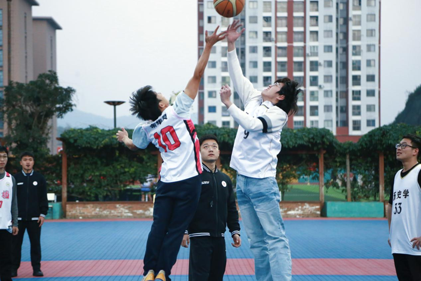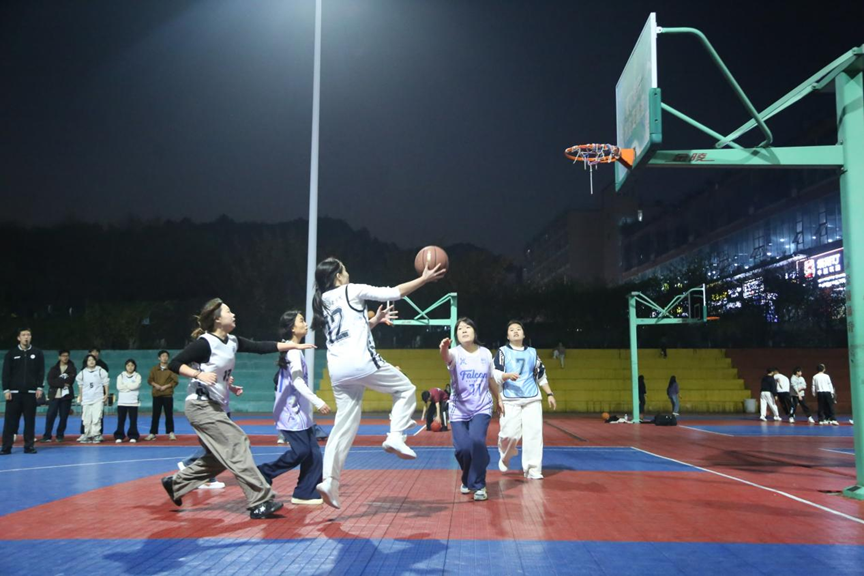 球员目光笃定,气场全开,裁判嘹亮哨声一响,比赛激烈。首先是女子组25级档案班对24级档案班,女队员们在赛场上敢打敢拼、互帮互助,用汗水诠释体育精神,用协作书写青春篇章。再看男子组的比赛,只见球场上人影叠窜,球员们步伐行云流水,篮球在手掌里滑动,正中篮筐,惊艳场下众人。球员们默契的配合,从容不迫地抢球,以疾走如飞之势扣下精彩的一分,球场上顿时热血沸腾,高潮不断,这是属于历档学院学子奋斗活力的青春。